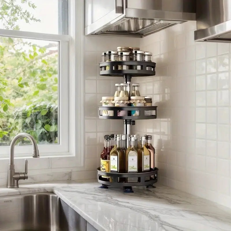 Verwandeln Sie Ihren Alltag mit dem drehbaren Tablett-Organizer Tazzi. Ideal zur Aufbewahrung von Gewürzen, Utensilien und Alltagsgegenständen – er vereint Praktikabilität und Stil in einem einzigen Produkt. Sein drehbares Design und die verstellbare Höhe sorgen für leichten Zugriff und perfekte Organisation.